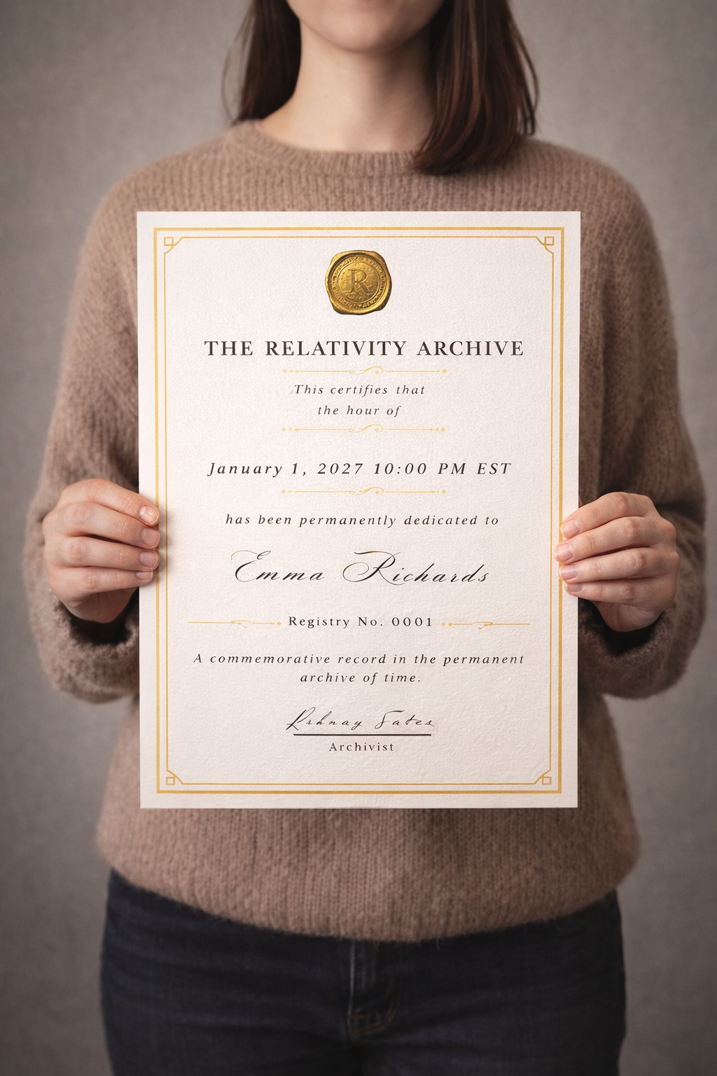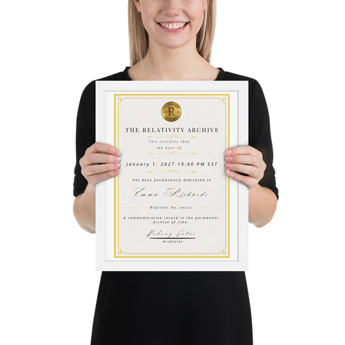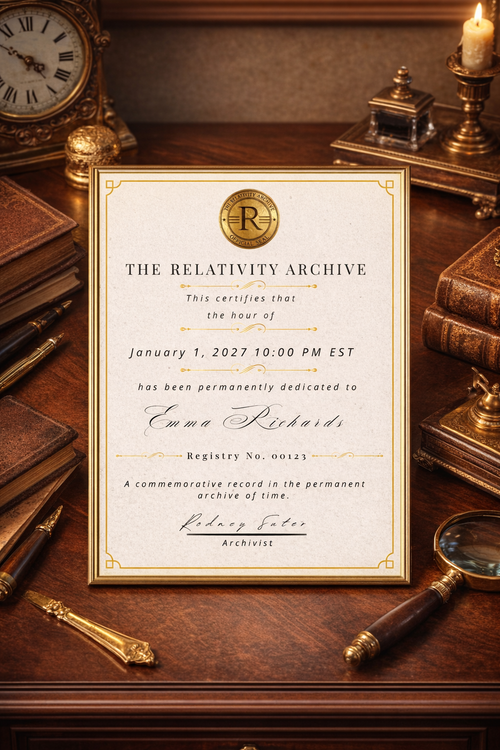 Your hour is permanently recorded in The Relativity Archive with an official archival certificate